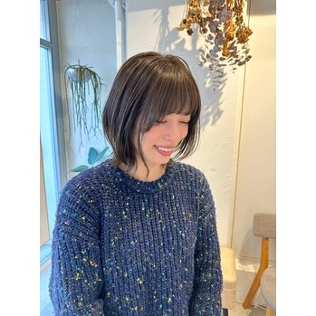 オリーブグレーは、赤味のないクールなカラーながらも、透明感が抜群で柔らかな印象を与えてくれます。くびれボブにこのカラーを取り入れることで、さらに軽やかな印象になりますよ!これからの季節にぴったりの暗めカラーとしておすすめです。