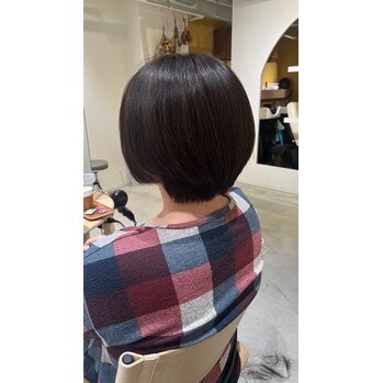 カラーリングは、赤みを抑えた色合いに仕上げました☆赤みを抑えることで、落ち着いた印象になり、どんなシーンにもぴったりです。モデルさんにも大変喜んでいただき、私もとても嬉しいです!