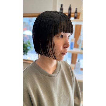 このボブスタイルは、シルエットを調整することでどなたにも似合います。たとえば、